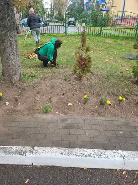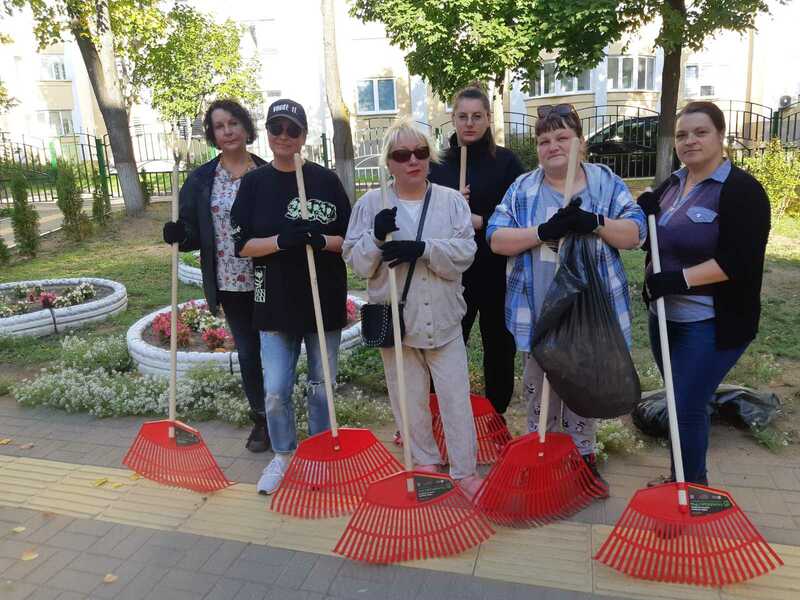 Сотрудники территориального центра. Уборка территории Первомайского района г. Минска (ул. Волгоградская 21А)