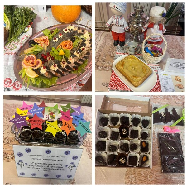 В ГУ «Территориальный центр социального обслуживания населения Первомайского района г.Минска» прошел кулинарный конкурс «Секреты вкуса», посвященный Дню защитника Отечества. В конкурсе приняли участие граждане пожилого возраста, посещающие отделение дневного пребывания, которые презентовали различные блюда собственного приготовления. Были представлены блюда из рыбы, пирог «Курник», шоколадные конфеты, маффины. Участники конкурса не только рассказали о рецептах приготовления, но и раскрыли традиции, связанные с этими блюдами.