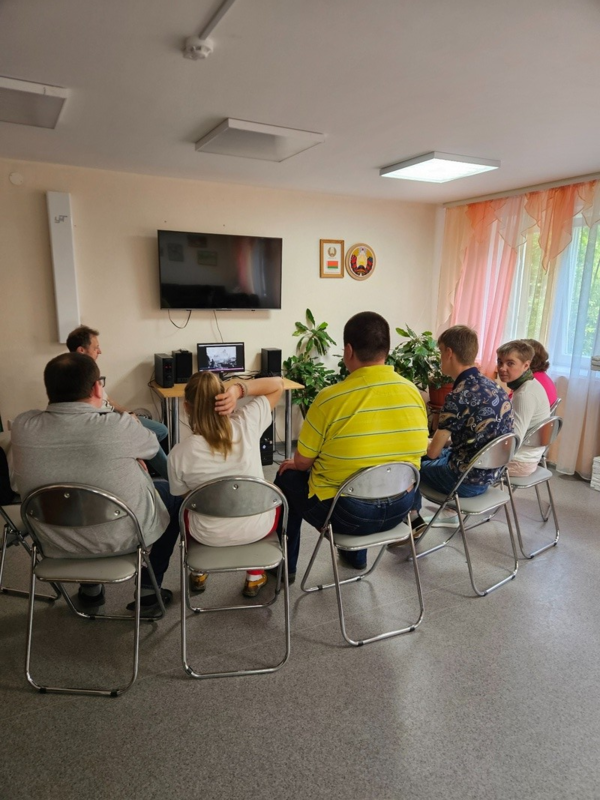 В отделении социальной реабилитации, абилитации инвалидов Первомайского района г. Минска 02.07.2024, в канун празднования Дня Независимости Республики Беларусь, состоялся исторический вечер памяти «Под мирным небом Беларусь». Подопечные отделения просмотрели видеоролик операция «Багратион» и ознакомились с презентацией, посвященной трагическому событию, произошедшему в белорусской деревне Хатынь.
