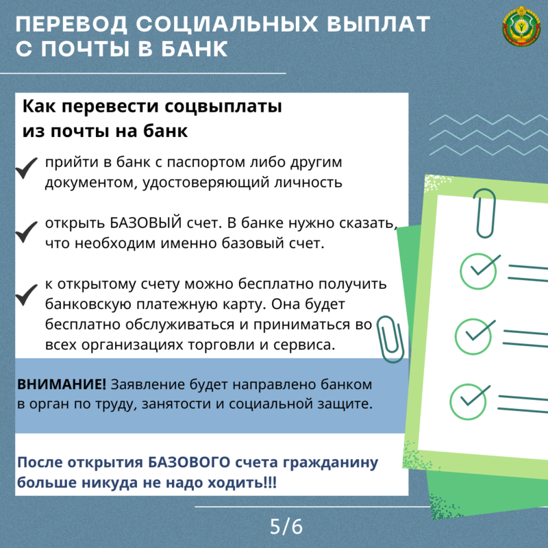 Изменения в порядке перевода соцвыплат с почты на банк