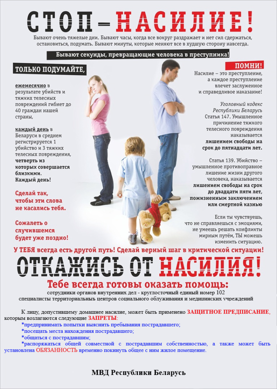 Правоохранительные органы. Если Вы подвергаетесь семейной жестокости, обратитесь в правоохранительные органы по телефону 102.