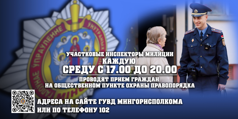 Каждую среду участковыми инспекторами милиции осуществляется прием граждан на общественном пункте охраны правопорядка.