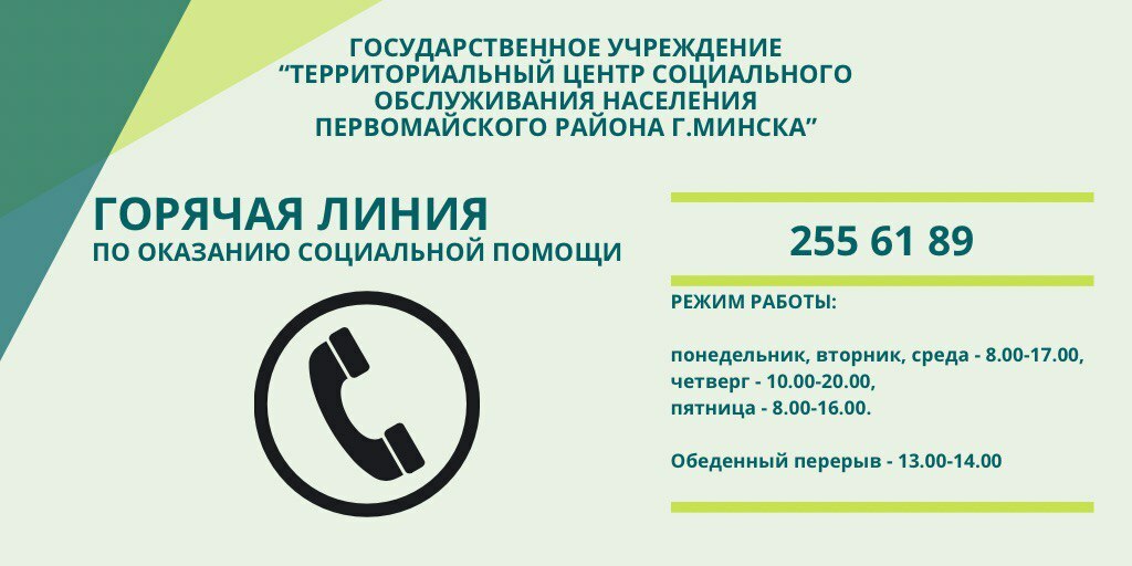 В связи с изменениями законодательства, вступившими в силу с 1 октября 2024 г. о лицензировании в сфере социального обслуживания, с целью оперативного предоставления сведений заинтересованным лицам о возможных вариантах организации ухода за нетрудоспособными гражданами в ГУ "Территориальный центр социального обслуживания населения Первомайского района г.Минска" организована ежедневная работа "горячей" телефонной линии.