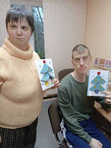 26 декабря в отделении социальной реабилитации и абилитации инвалидов ТЦСОН Первомайского района г. Минска прошел мастер-класс "Новогодняя открытка для родителей".