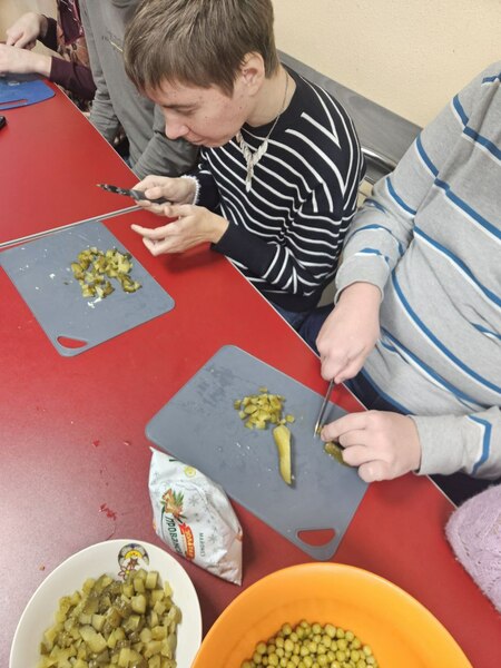 В отделении социальной реабилитации и абилитации инвалидов ТЦСОН Первомайского района г. Минска прошел кулинарный мастер-класс, на котором участники учились готовить традиционный новогодний салат Оливье!
