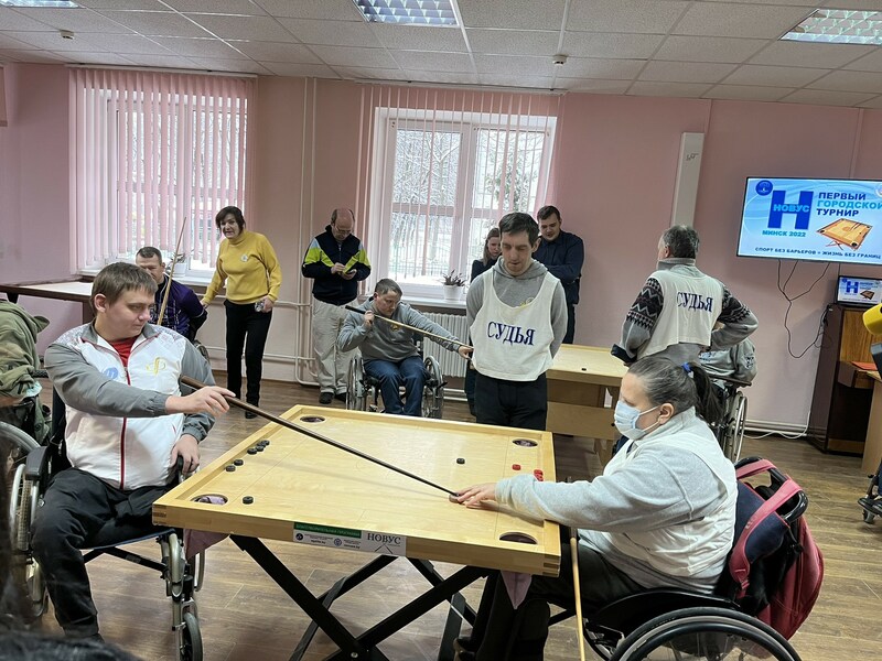 1 декабря 2022 года комитет по труду, занятости и социальной защите Мингорисполкома совместно с Государственным учреждением «Территориальный центр социального обслуживания населения Первомайского района г. Минска» организовали и провели первый городской турнир по Новусу для инвалидов-колясочников.